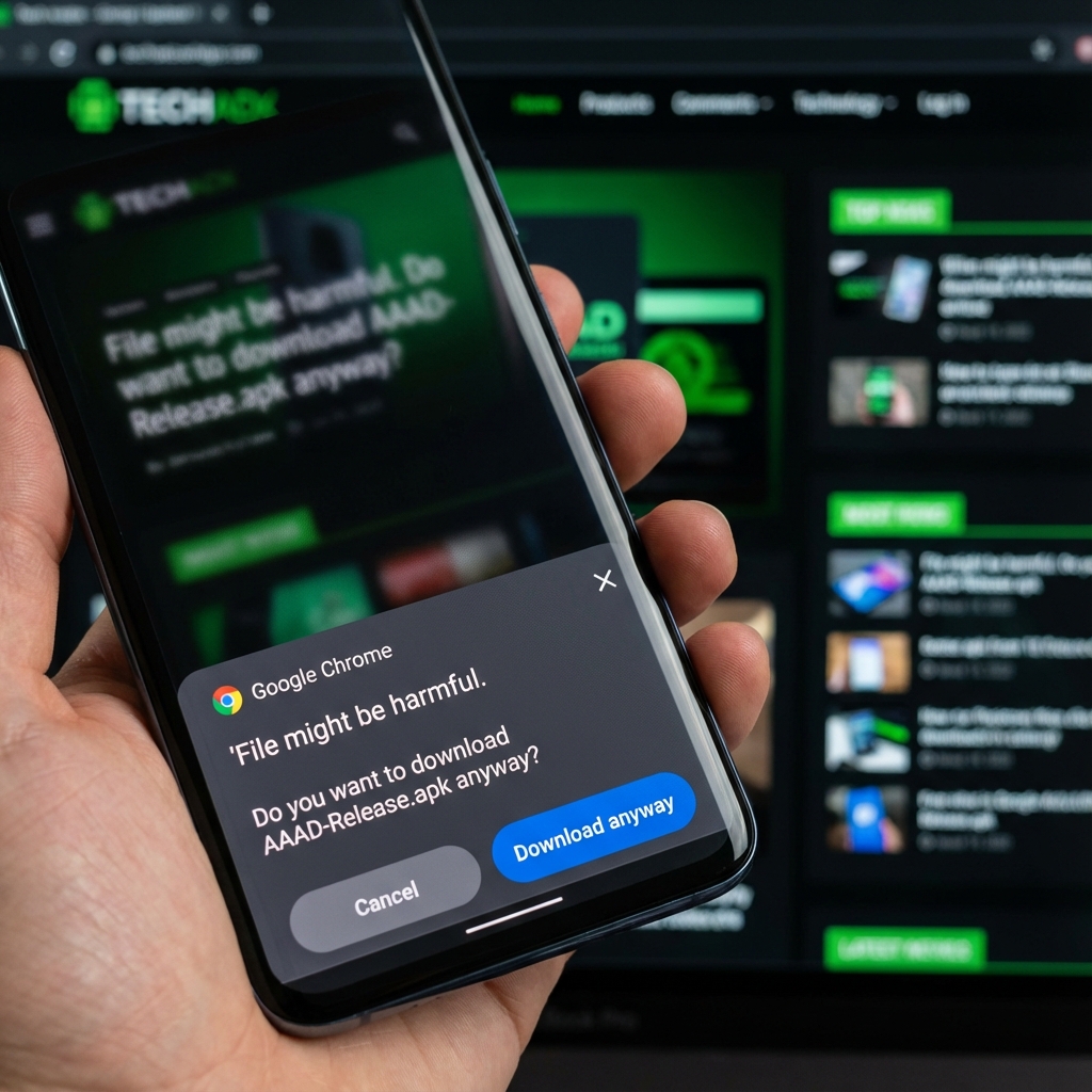 Rest assured, AAAD is safe. This generic warning appears for all APK downloads. Tap Download anyway to proceed.